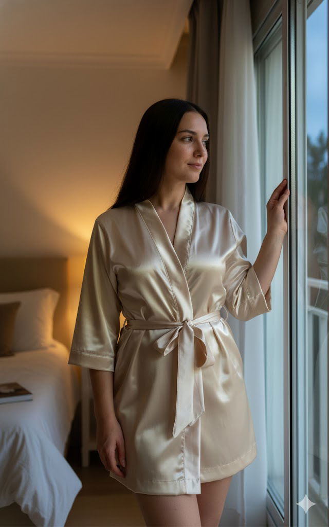 Son el detalle ideal para mimar a tus damas de honor, amigas, hermanas o madrina mientras se maquillan y peinan junto a vos. Su diseño tipo quimono es cómodo, favorecedor para todos los cuerpos y, lo más importante, fácil de quitar sin arruinar el peinado.