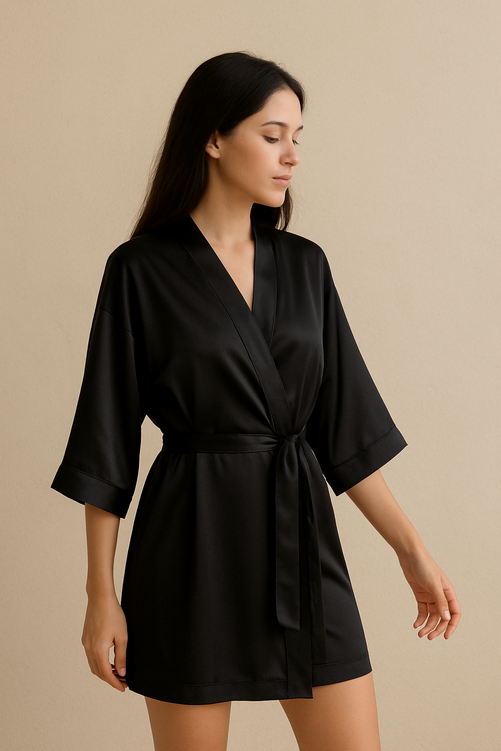 Nuestro kimono de satén es el aliado definitivo para tu getting ready. Su textura suave cuida tu piel, y su diseño abierto te permite quitártelo fácilmente sin arruinar tu peinado ni tu maquillaje cuando llegue la hora de ponerte el vestido.